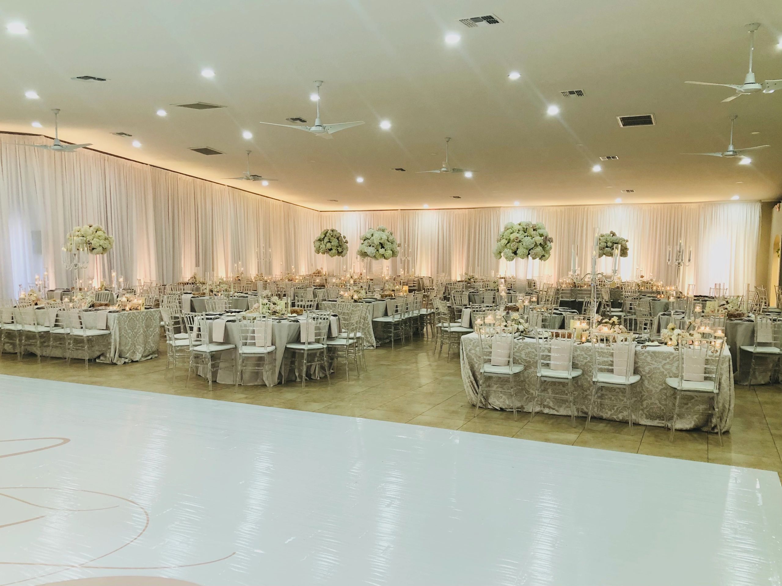 Open floor plan with neutral accents gives you the ability to arrange the seating layout according to your specific needs and is apt to handle a guest capacity up to 300 people.